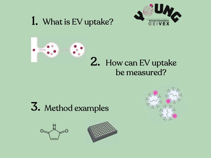 The seminar discussed the multiple pathways involved in EV uptake, including clathrin-mediated endocytosis, caveolin-dependent endocytosis, macropinocytosis, and membrane fusion, emphasizing that uptake is a multifactorial and energy-dependent mechanism rather than a single defined route. Additionally, the talk highlighted how EV cargo can be released inside the cell through fusion with endosomal membranes. The seminar also reviewed experimental approaches to study uptake, such as luminescence-based assays for quantitative measurement and maleimide-based fluorescent labeling for visualization of EV internalization. Overall, the session provided a clear overview of both the biological significance of EV uptake and practical tools to study it.